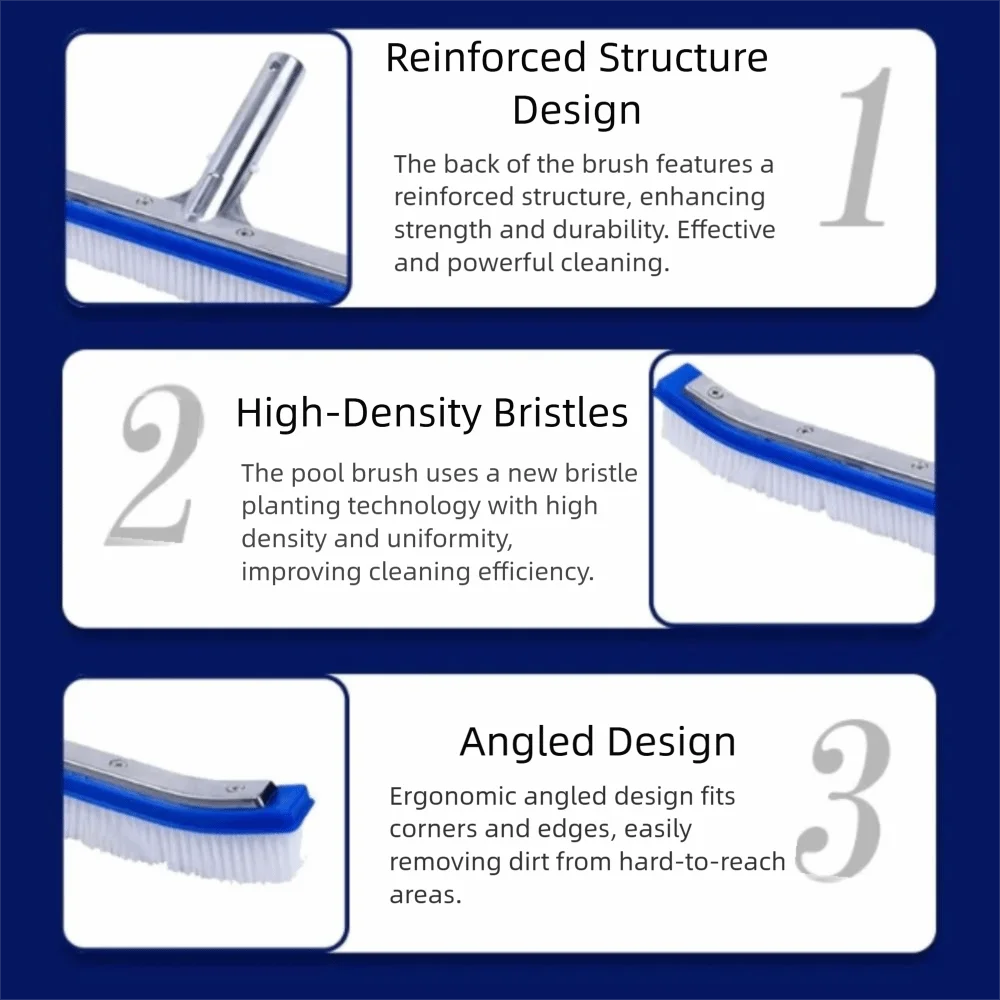 18 Inch Pool Cleaning Brush Aluminum Handle Stainless Steel Brush Swimming Pool Brush Glue Floor Brush Plastic Brush