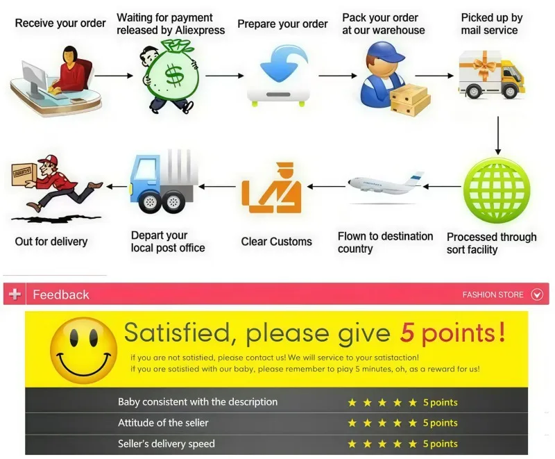 1.If you are satisfied with your order, please leave us all 5 stars including Item as Described. Communication and Shipping Speed.