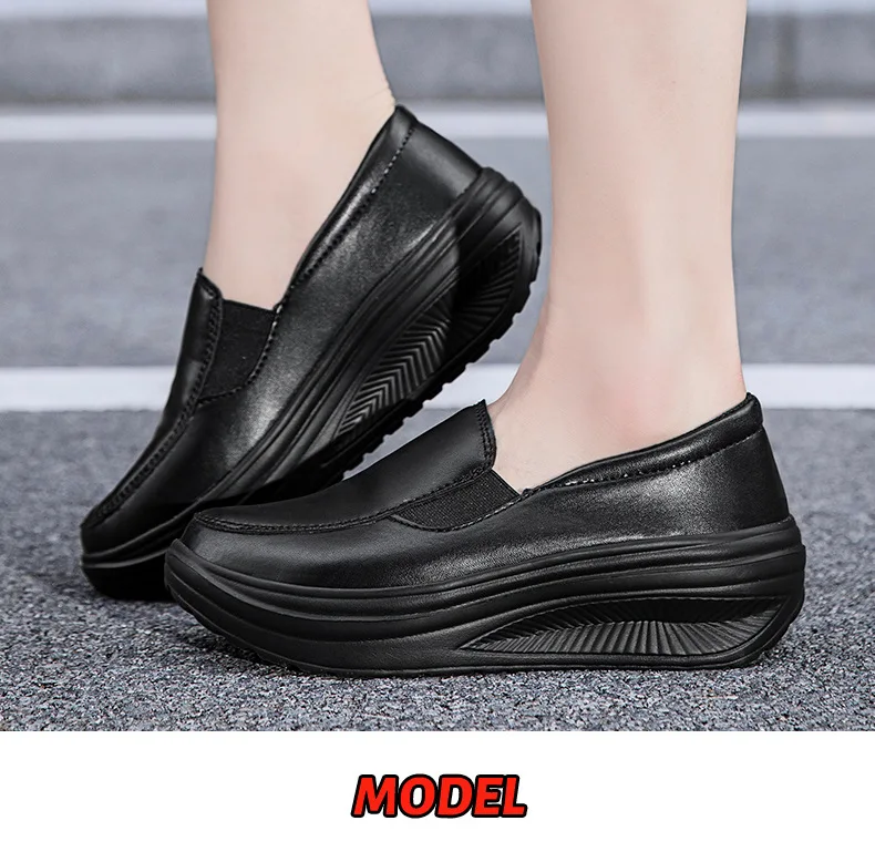 2026 Women's Shoes Spring Genuine Leather Soft Outsole Work Shoes Female Black Swing Woman Plus Size Wedges Single