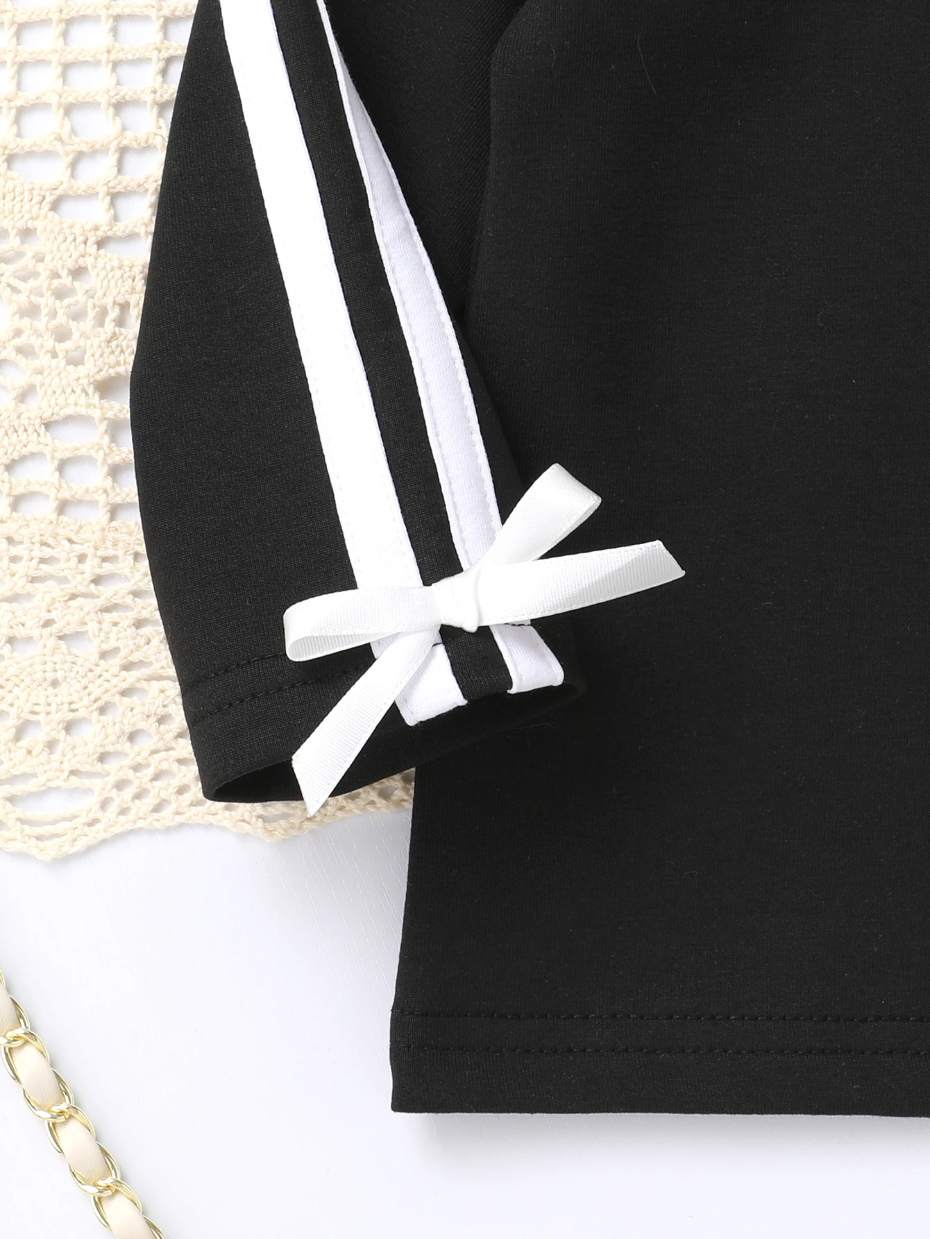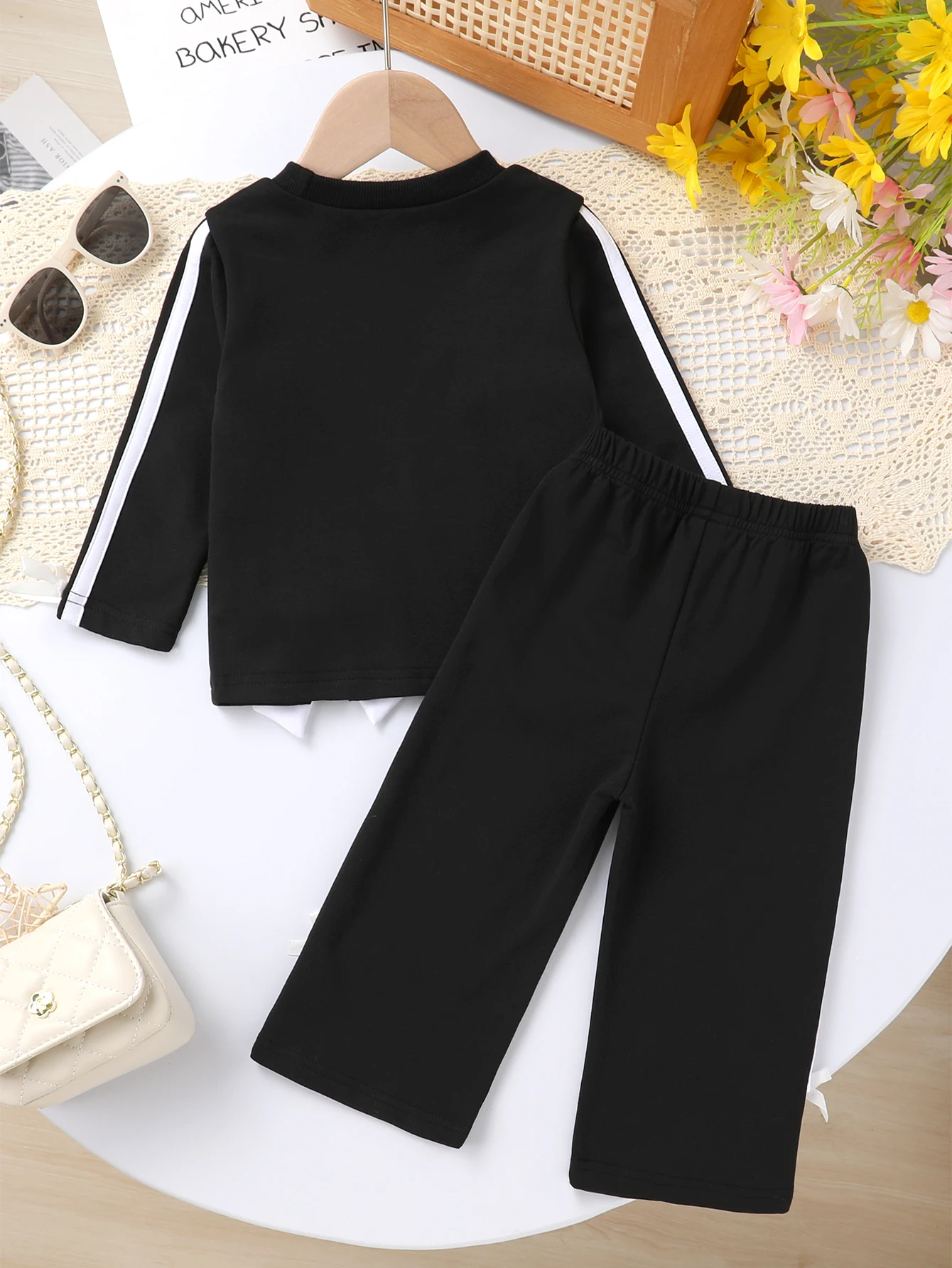 Baby Girls' Spring Outfit Set, Cute Bow Decor Long Sleeve Sweatshirt & Casual Soft Pants