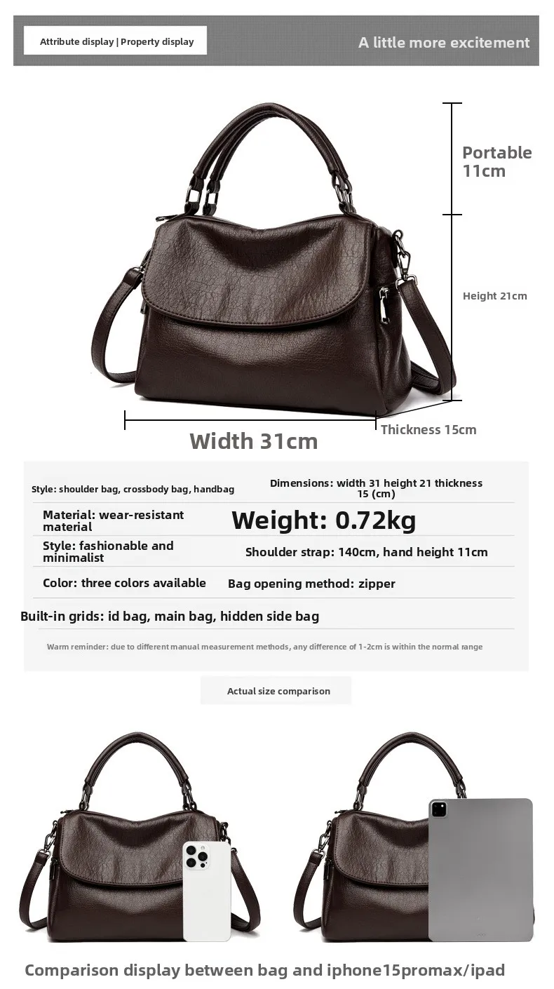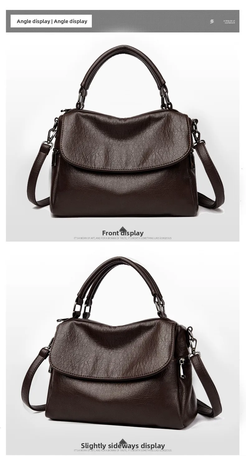 Boston Women's Bag 2025 New Fashionable and Versatile Handheld Soft Leather Casual Large Capacity Bag