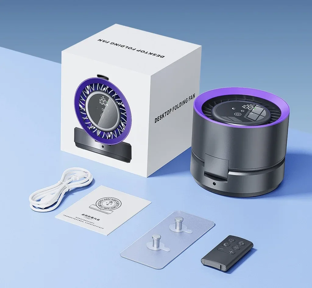 Eary Multifunctional Electric Fan Desktop Wall Mount Fan with Light LED Display Wireless Remote Control Home Air Circulation Fan