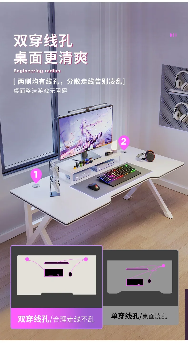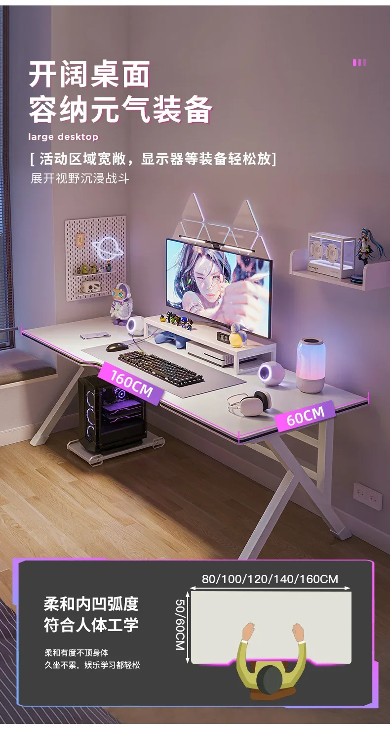 Ergonomic Large Gaming Desk, K-Shaped Gaming Table, PC Gaming Workstation Home Office Desks, Space-Saving, Easy to Assemble