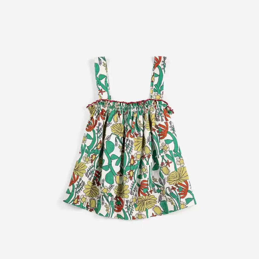 Fashion Girls Dress Countryside Style Summer Flower Printed Fashion Dresses Baby Kids Skirts Series Outfit Clothing