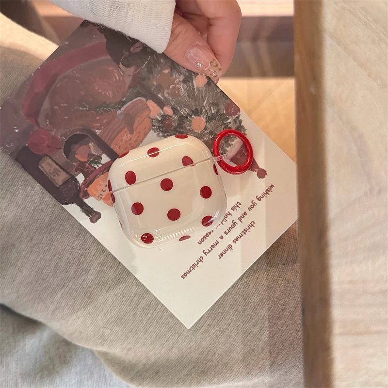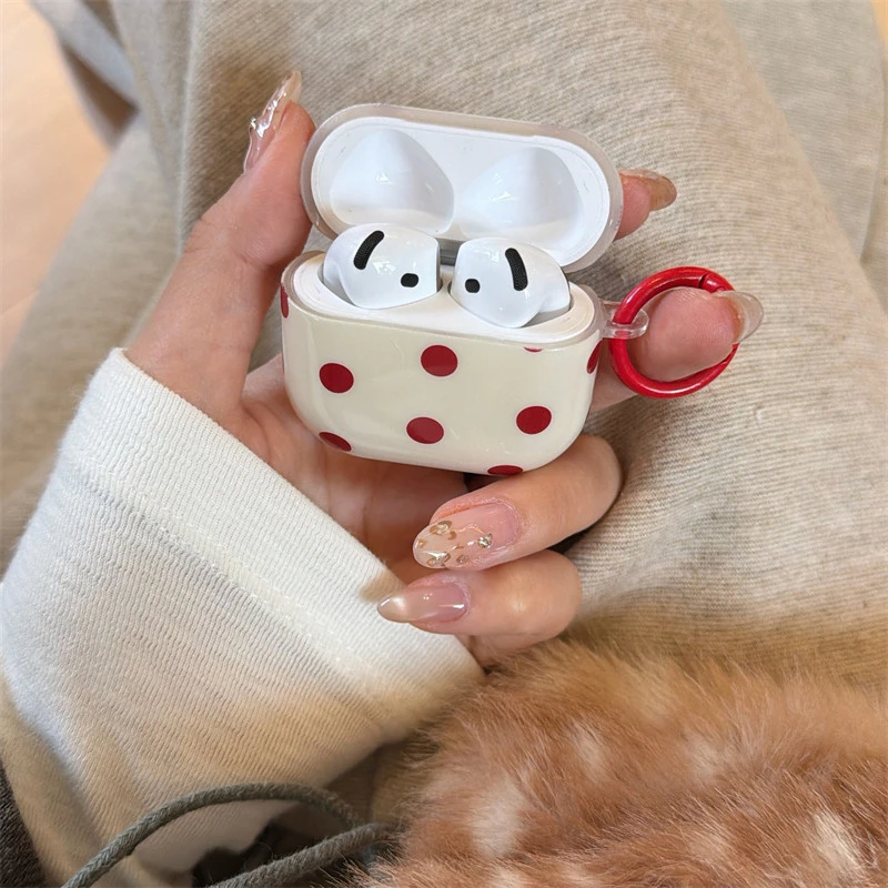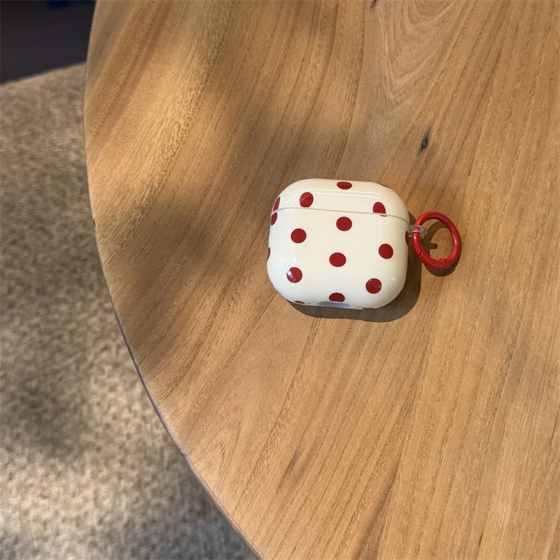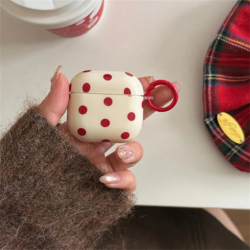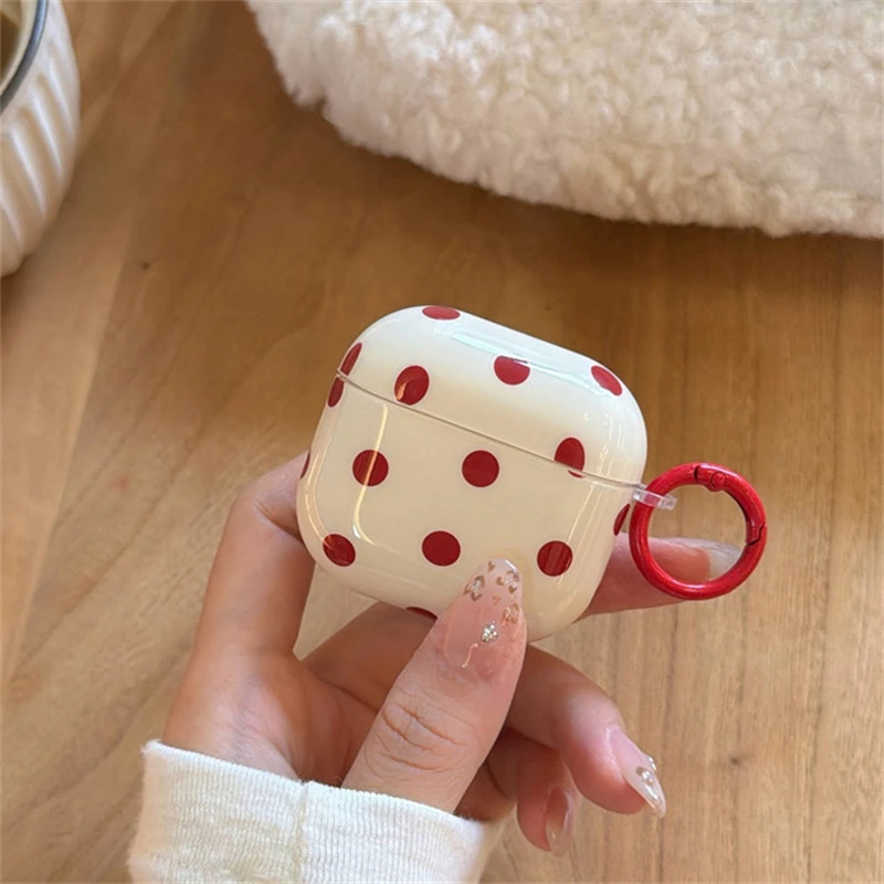 INS Korean Cute Red Polka Dot Glossy Beige Earphone Case Cover for AirPods 1 2 3 4 Pro 2 Pro 3 Shockproof Protective Case