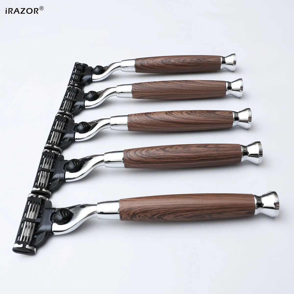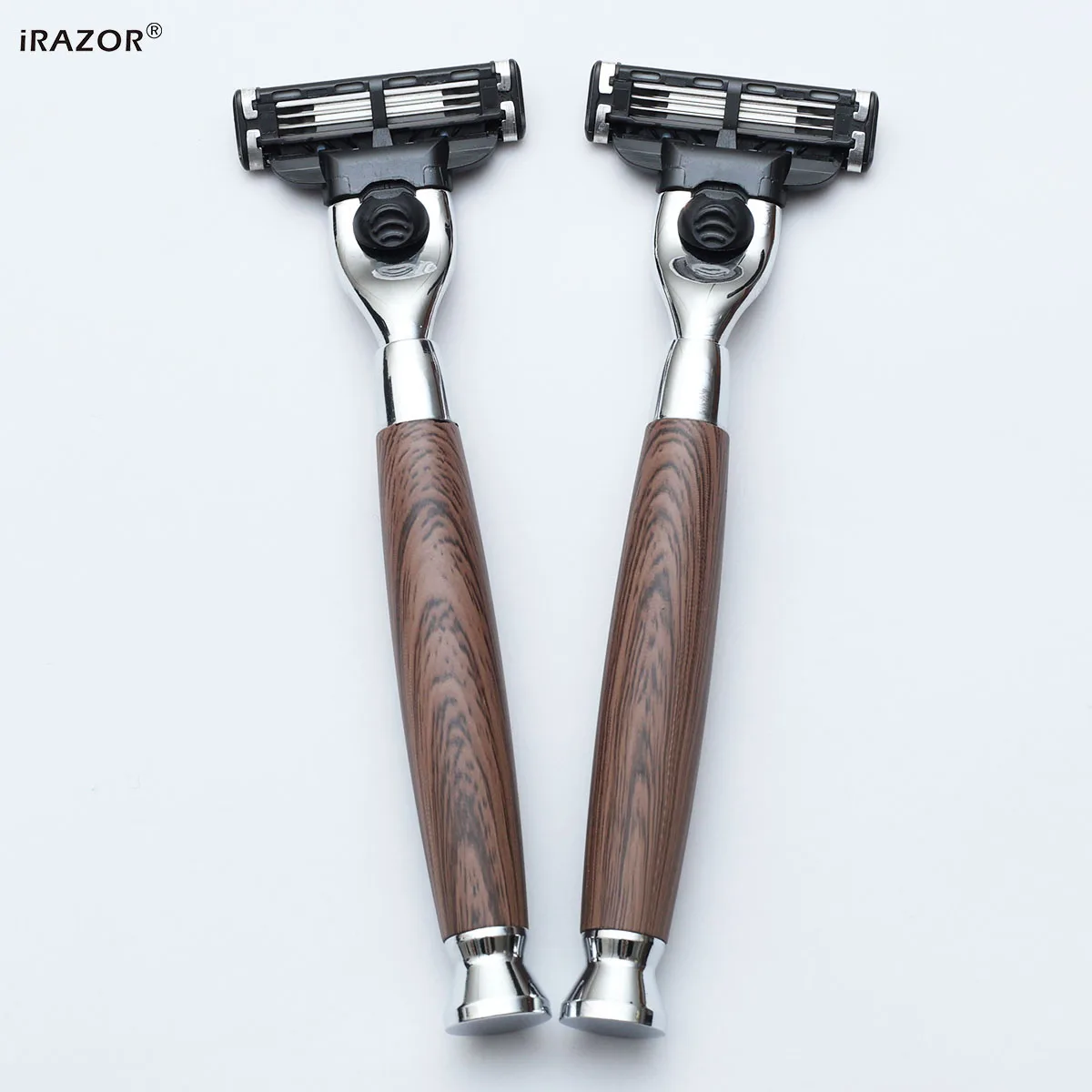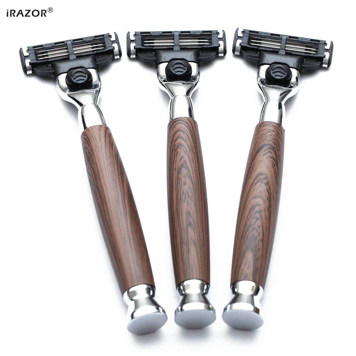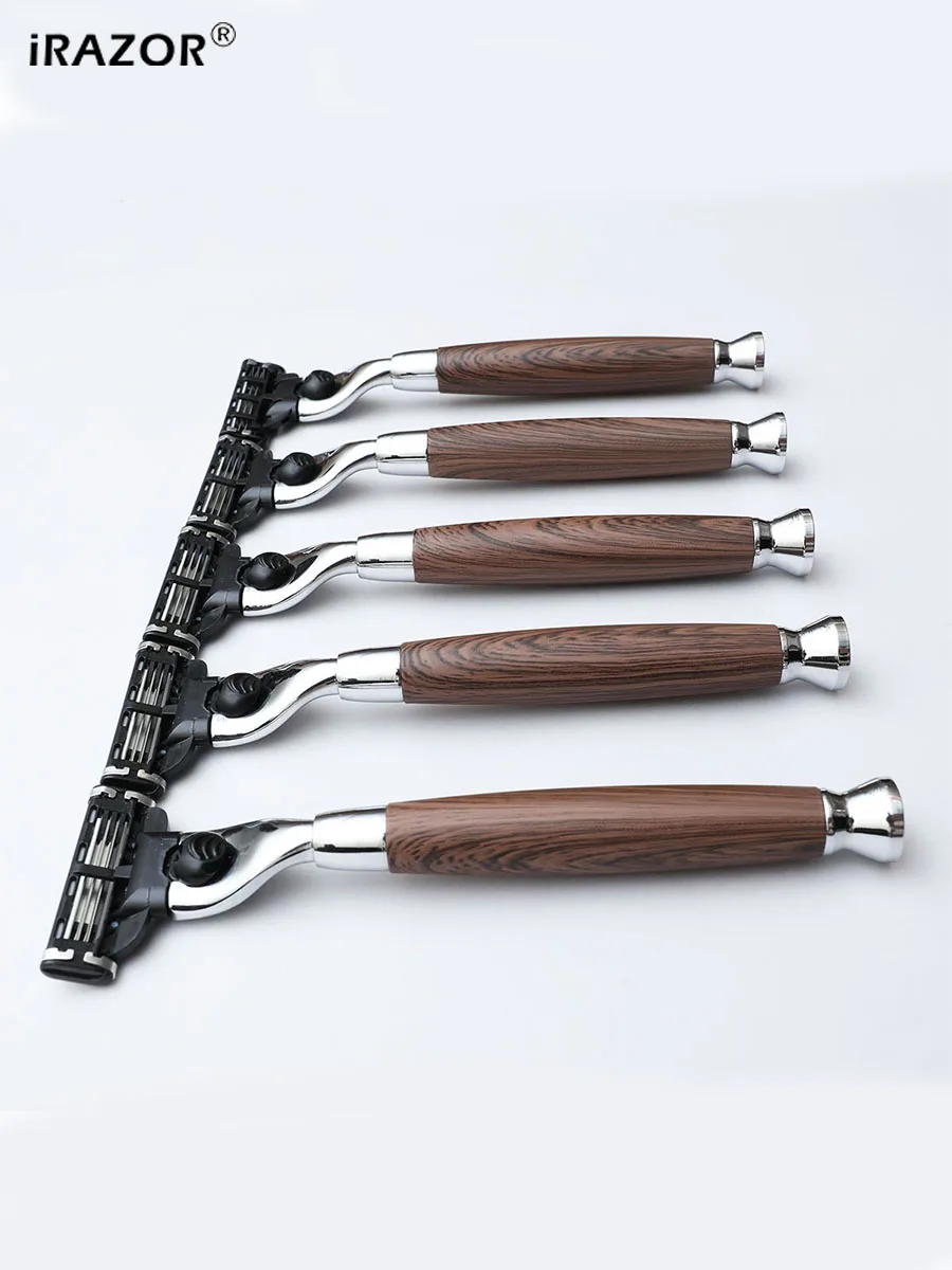 iRAZOR Classic 3-Layer Triple Blade Shaving Razor with Aluminium Wood Grain Handle Beard Grooming Tool for Men Birthday Gift