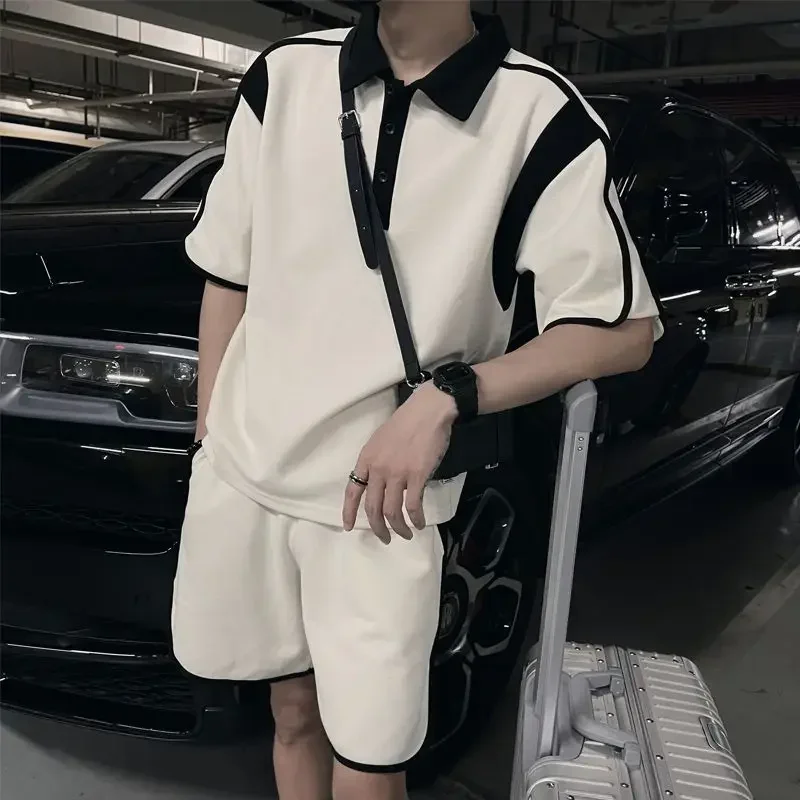 Men's High-end Outfit Suits for Summer Pairing with Handsome Polo Shirt Short-sleeved Shorts Cool Handsome Two-piece Set