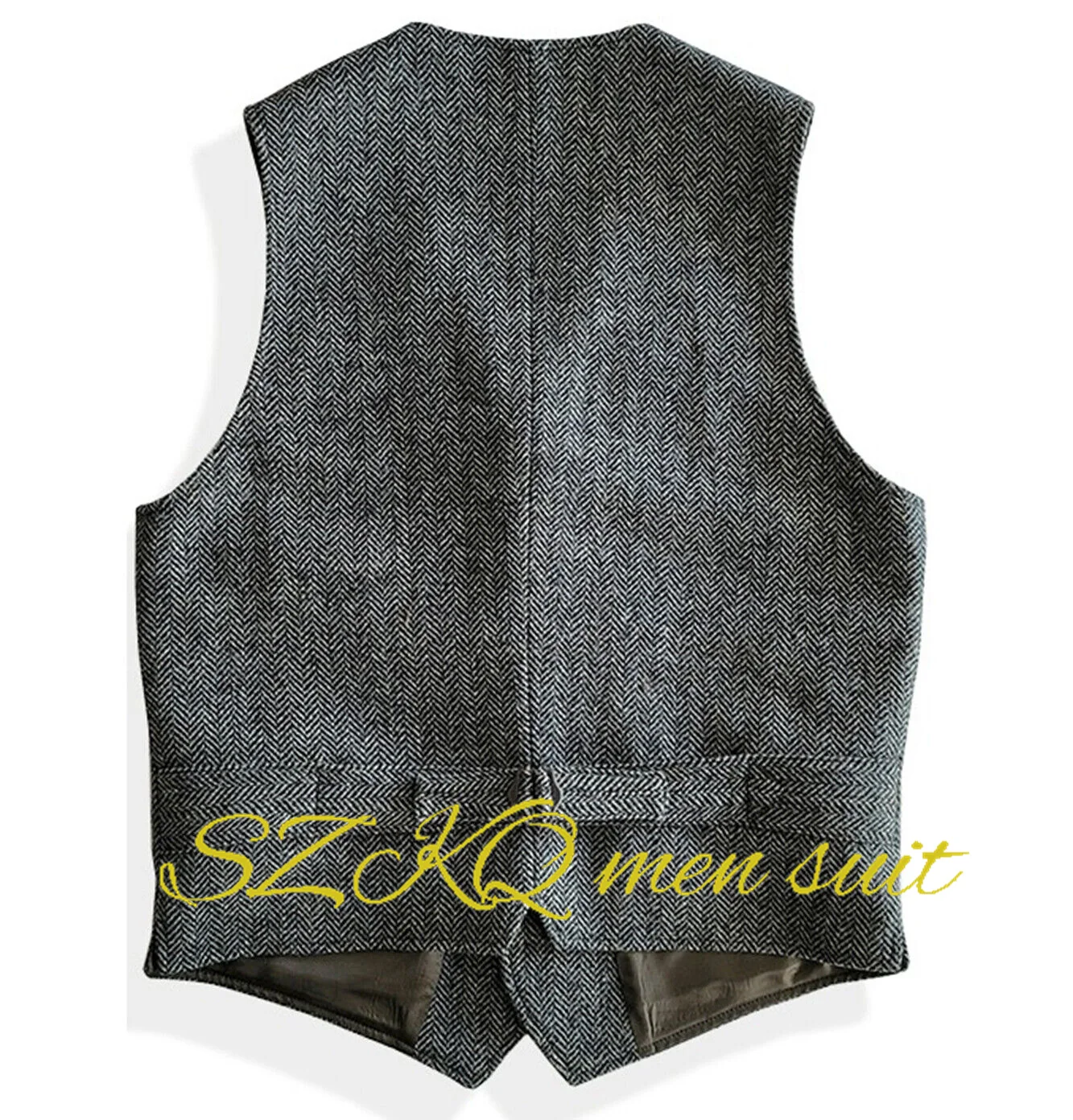 Mens Suit 2 Piece Waistcoat Vest Pants Herringbone Retro Vintage Trousers For Wedding Retro Wool Outfit