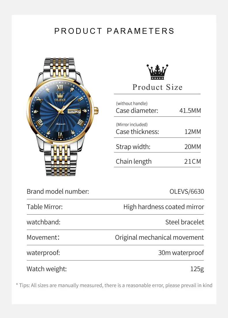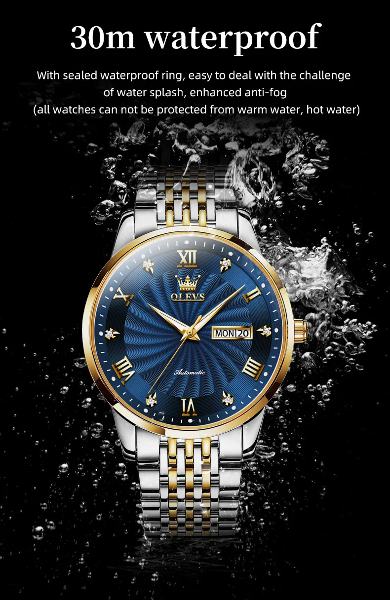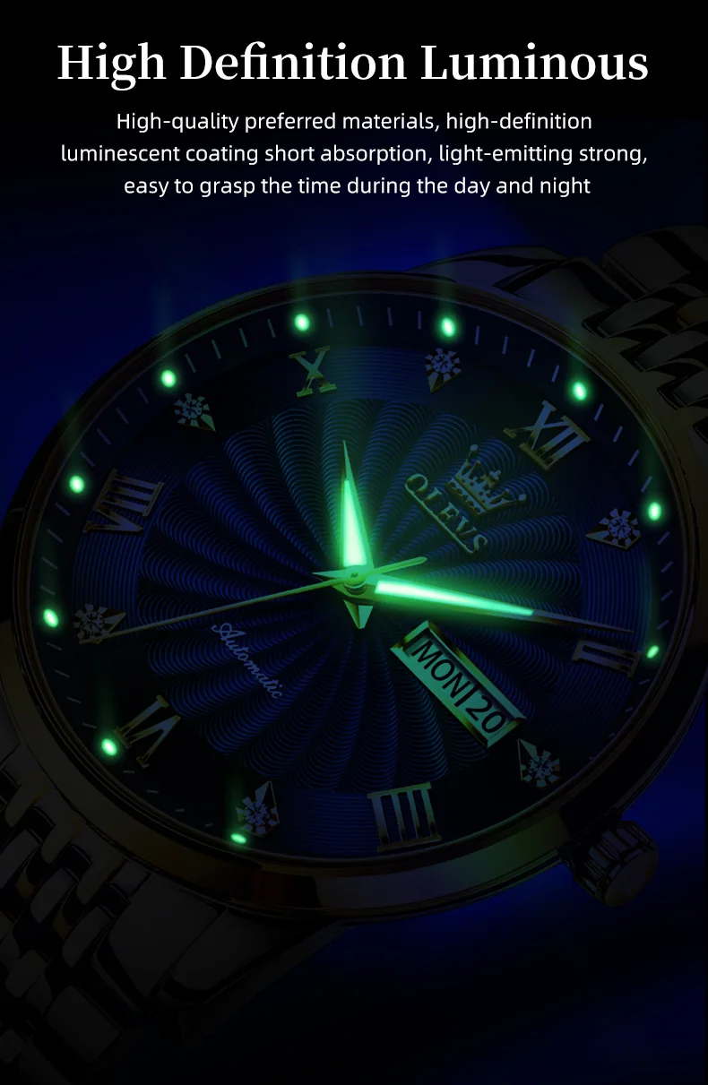OLEVS Men's Watches Top Brand Fashion Original Automatic Mechanical Wristwatch for Man Self-winding Movement Waterproof Luminous