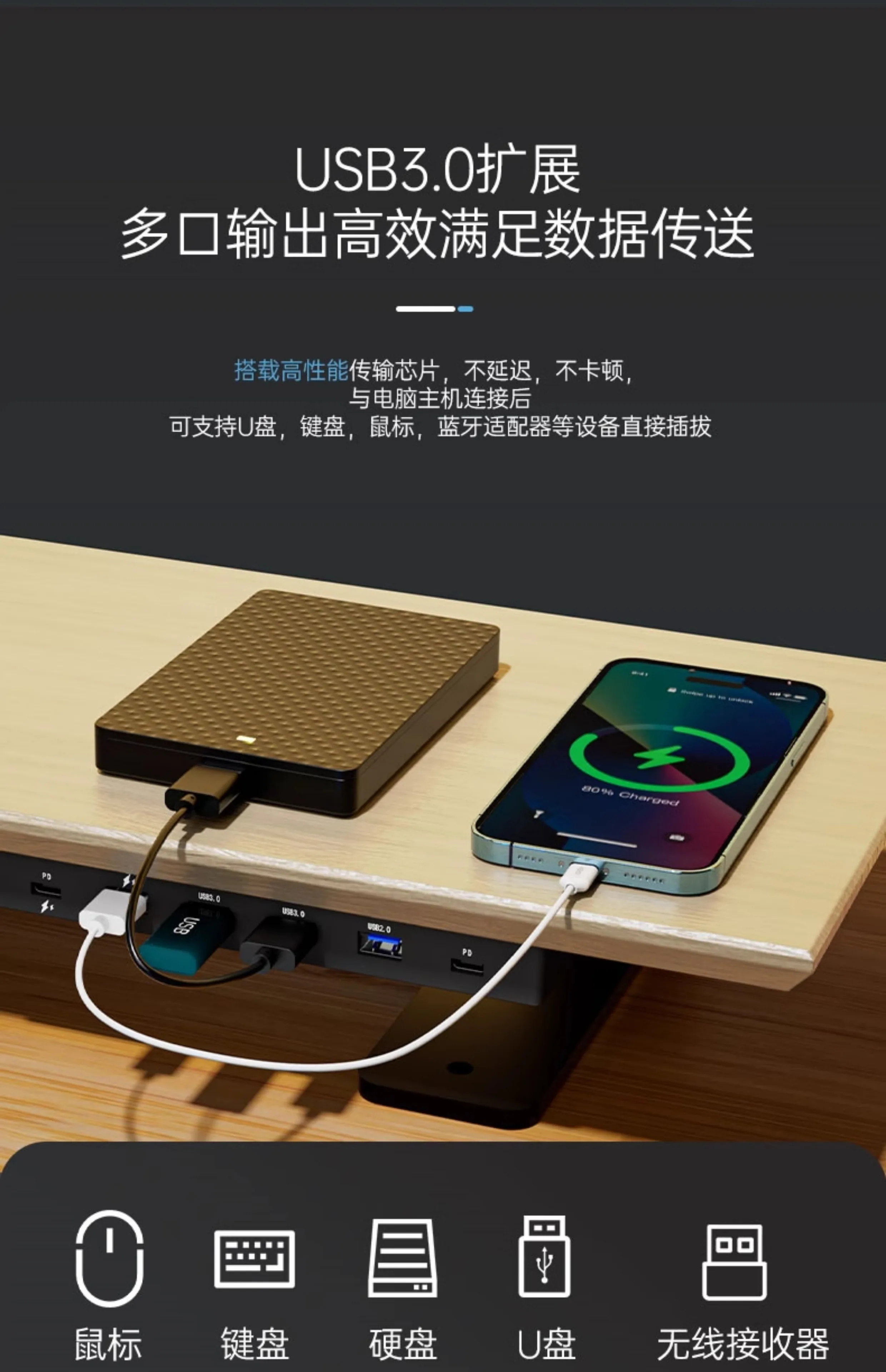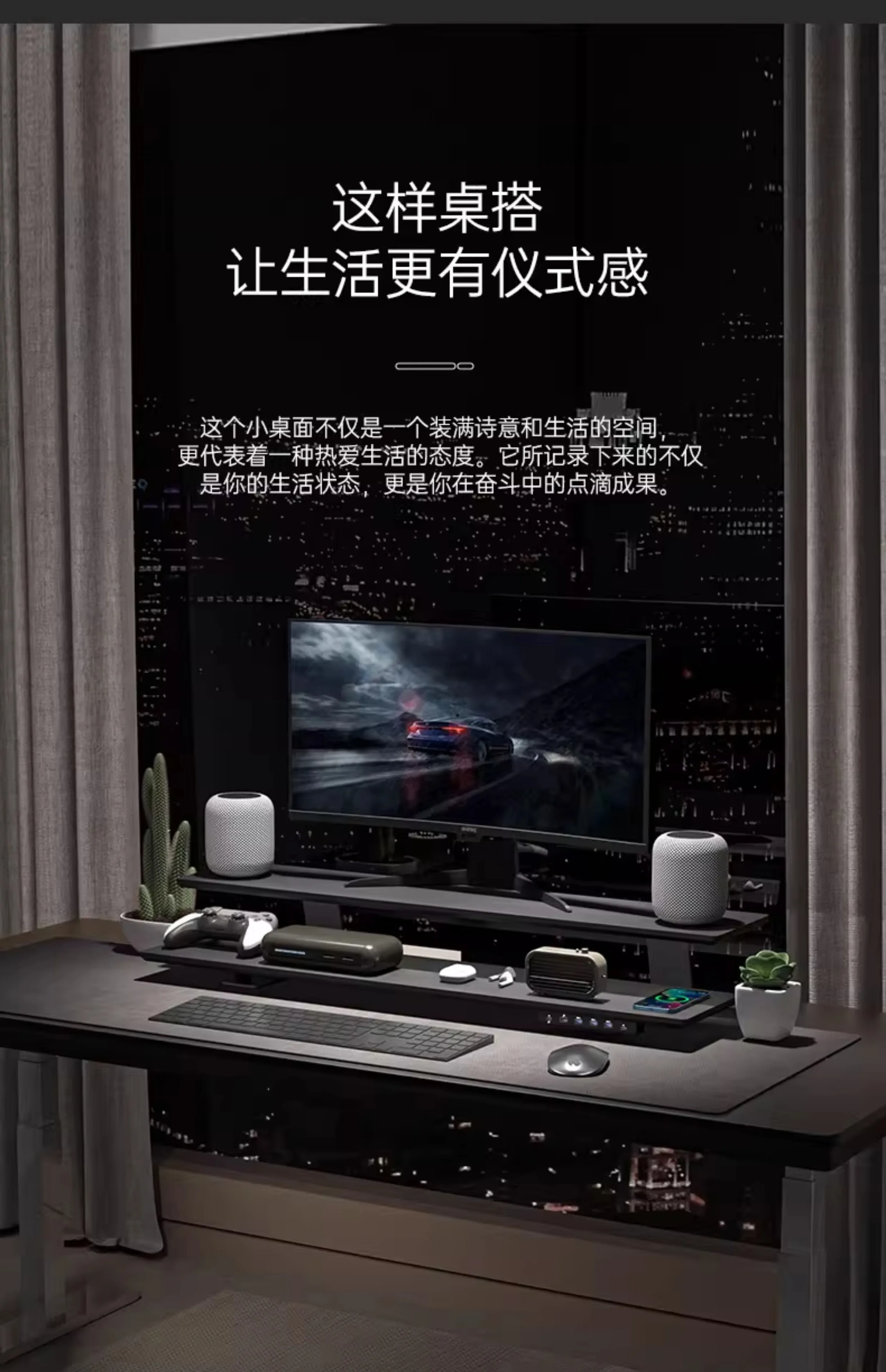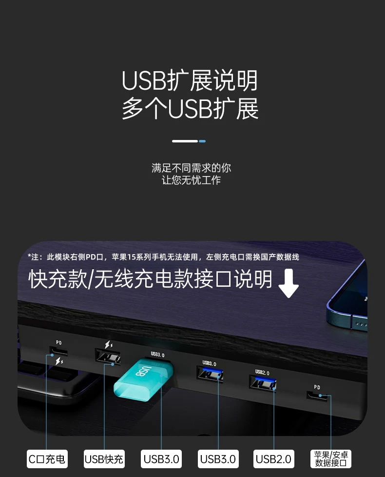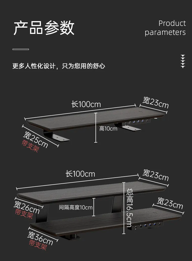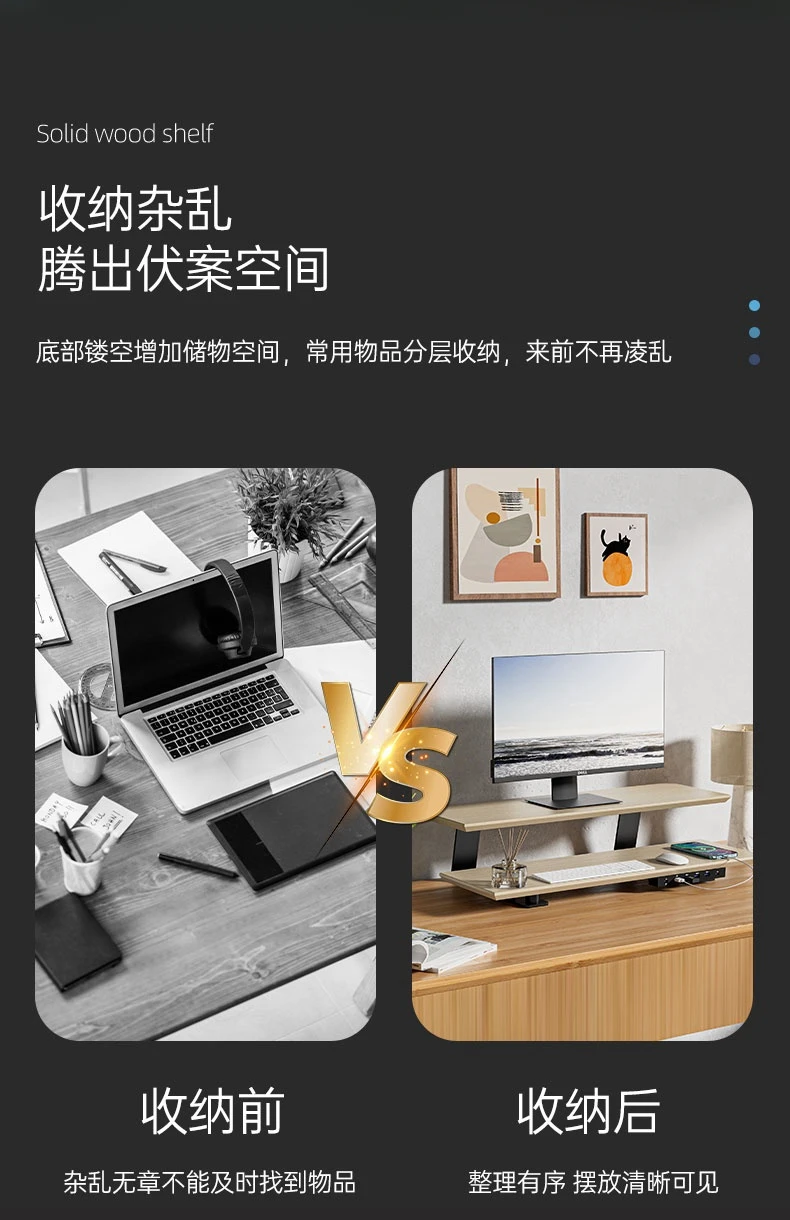 Solid Wood Gaming Desk Top with Monitor Riser Stand Charging Shelf & USB Hub Hidden Storage USB Dock for PC Gaming Setup
